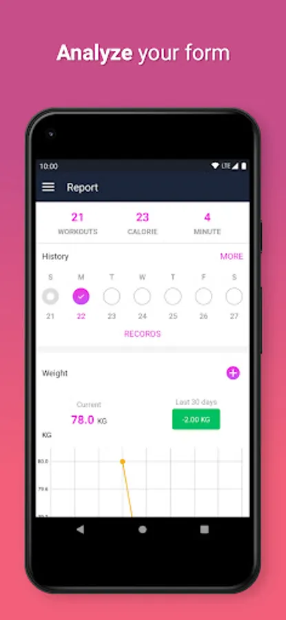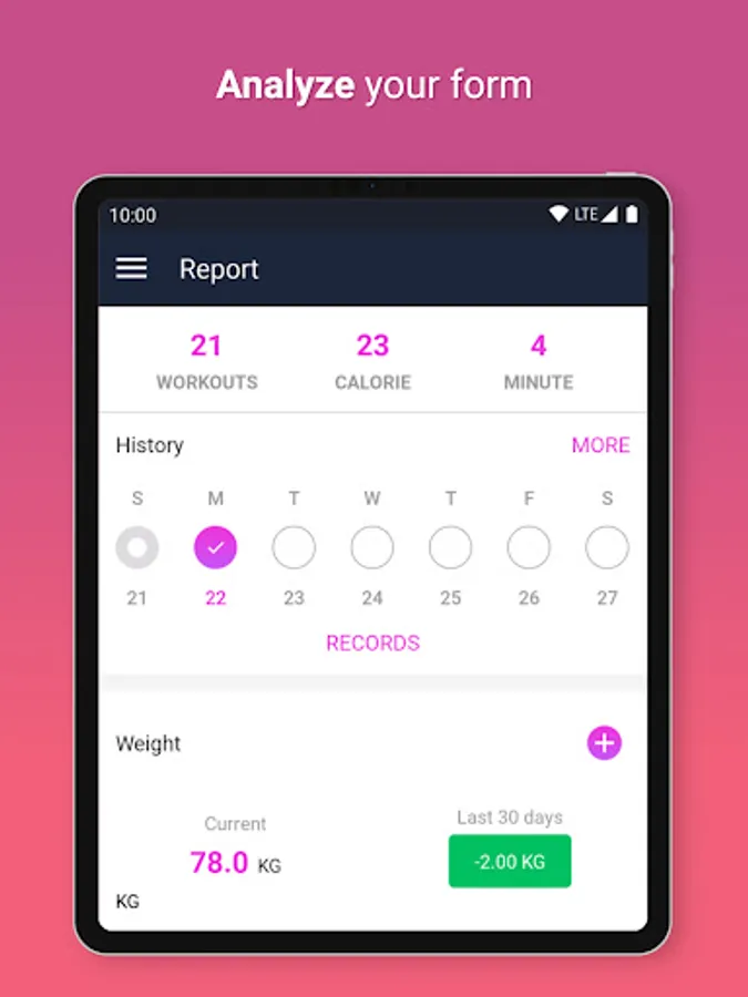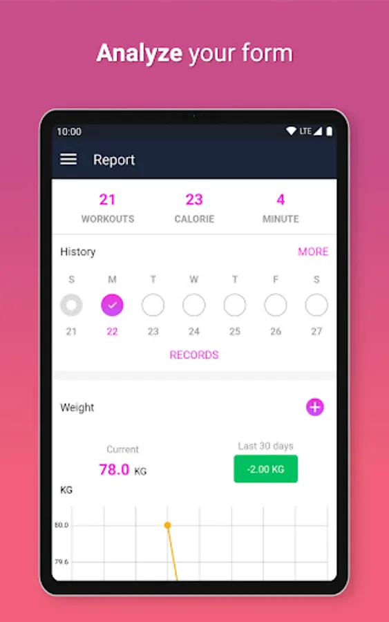 You can track how much exercise you do, how many calories you burn, how long you work. Check out your daily changes. You can monitor your weight with a graph. You can constantly monitor your BMI value.