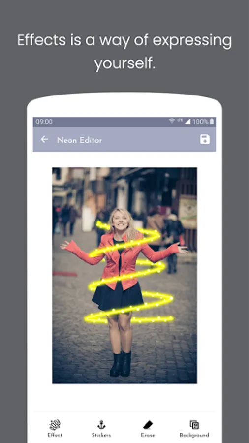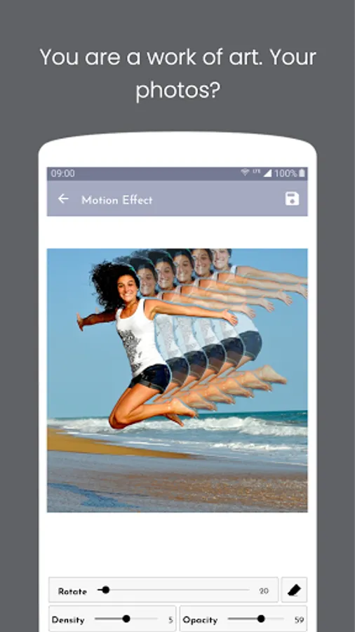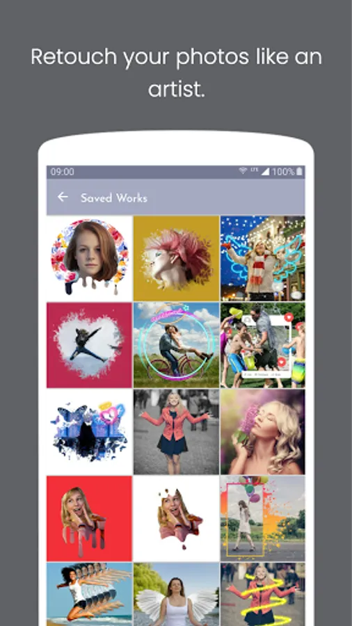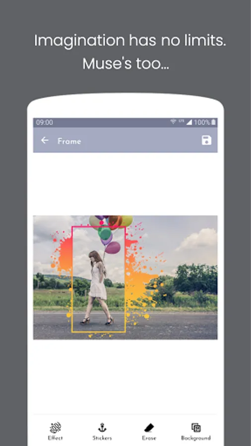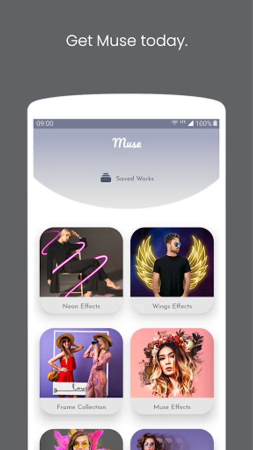 With Muse, you can add neon effects, wings, frames, custom effects, drip effects, motion effects, B&W effects and blur effects to your photos.