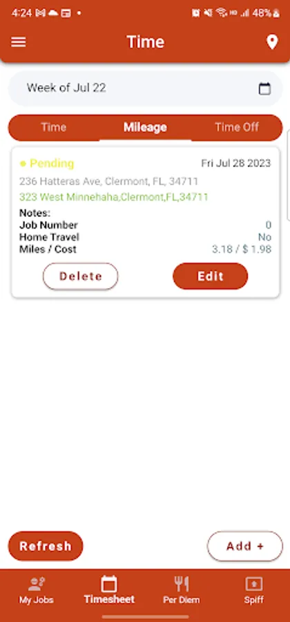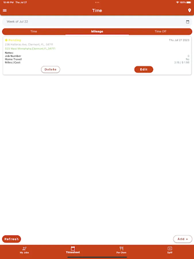 - This app allows Kalos field personnel to do common administrative tasks, such as entering time, adding per diem, tracking mileage, and more.