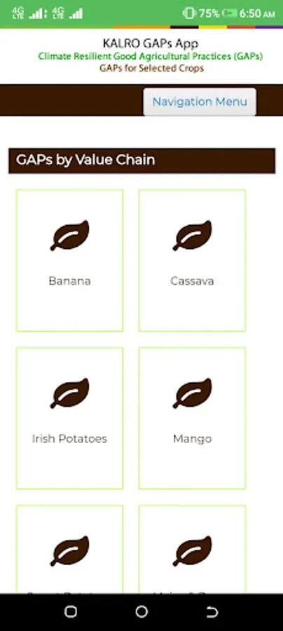 Good Agricultural Practices (GAP) for android phones is intended for growers/producers, producer organizations, agricultural experts and extension service providers both public and private, agricultural cooperatives, researchers, academia, universities.