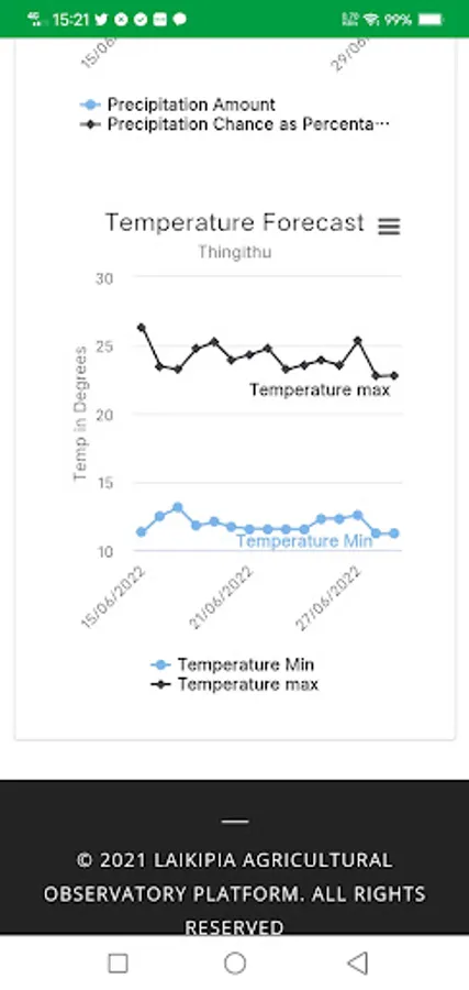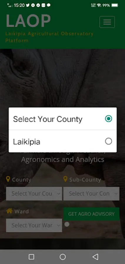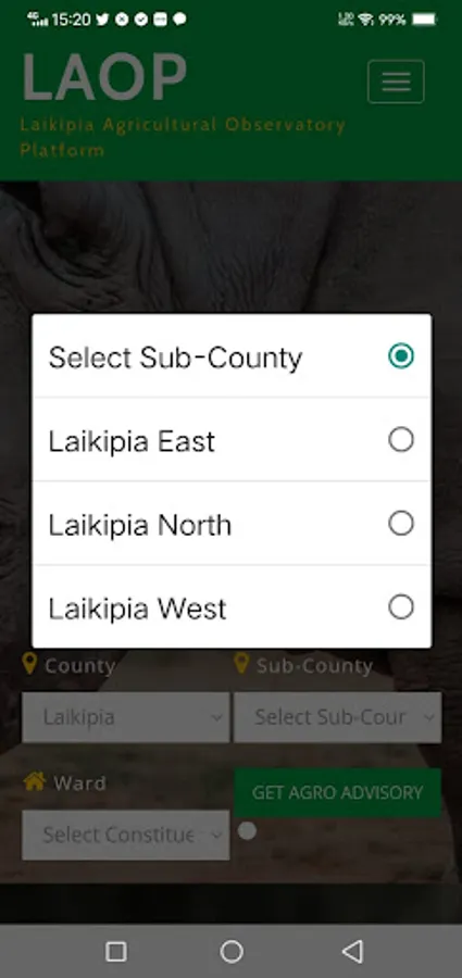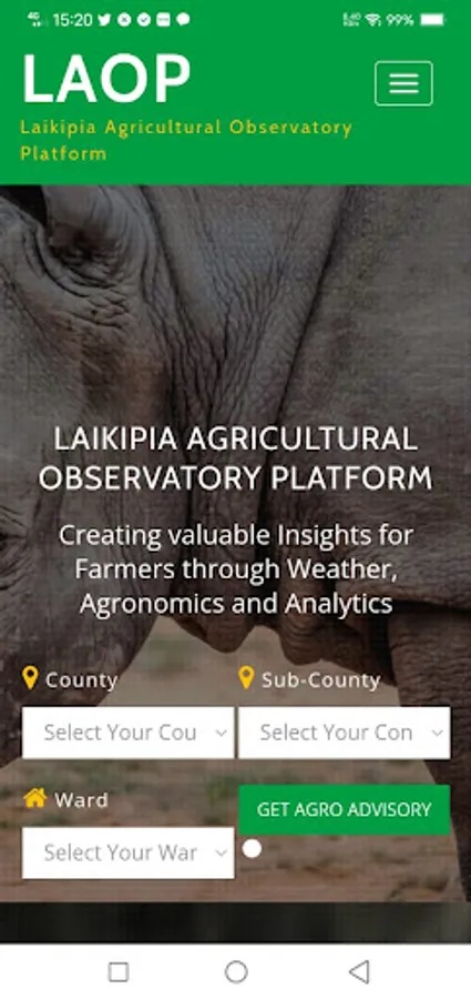 LAOP is an integrated online platform that uses Geo-data from satellites to generate real-time and location-specific agro-advisories for farmers and other stakeholders. These advisories enable them to make more informed farming decisions. The system is able to predict precipitation and temperature and plot dynamic charts given GPS coordinates of any location in the country for the next 15 days and provide weather observations for the past 7 days and 30 days.