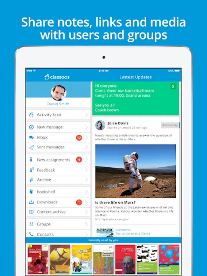 Classoos is a digital textbook service and learning resources platform, allowing teachers & students to enhance textbooks and distribute learning materials. Classoos has distribution arrangements with a growing list of international textbook publishers such as Pearson, Hodder, Cambridge and many others to feature their content on the service. At the moment classoos is only available to schools so go to www.classoos.com and get a trial account today.