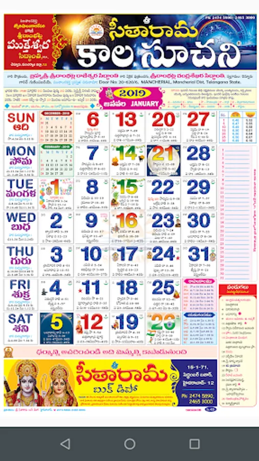 Kalasuchani, the MOST ACCURATE Telugu Panchangam written by Sri Rambhatla Chandrashekara Sidhanti, grandson of the most famous Astrologer, Sri Rambhatla Mukteshwara Siddhanti, Adilabad, with an excellence in Astrology for over 50 years