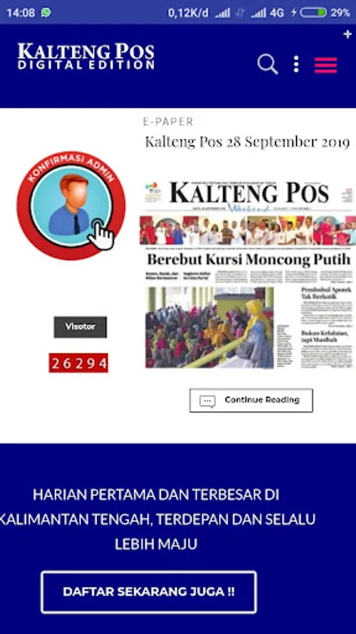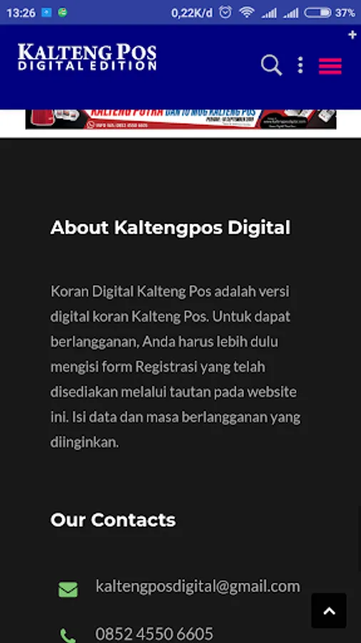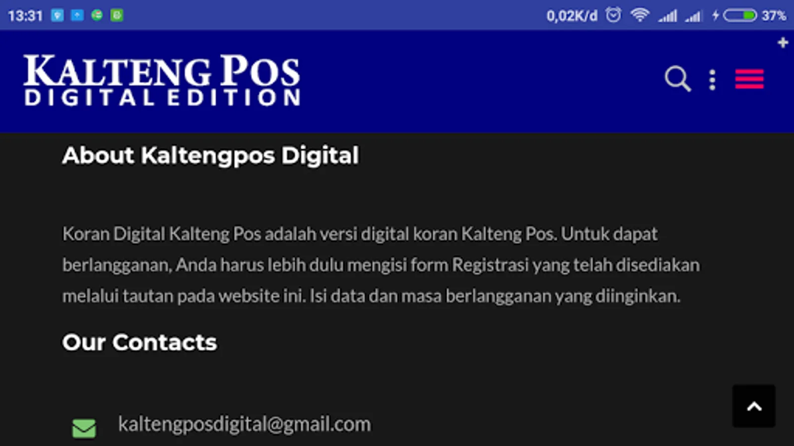 Kalteng Pos Digital is the largest daily newspaper in Central Kalimantan Province. With the digital version, readers outside the Central Kalimantan region can get news easily. Its head office is located at Jalan Tjilik Riwut Km 2.5 Palangkaraya. Central Kalimantan Pos is the first and largest newspaper in Central Kalimantan. The distribution of this newspaper covers 13 regencies and 1 city in Central Kalimantan. Includes Palangka Raya, Kapuas, Pulang Pisau, Gunung Mas, East Kotawaringin, Katingan, Seruyan, Kotawaringin Barat, Lamandau, Sukamara, East Barito, South Barito, North Barito, and Murung Raya. Every day 28 pages are published containing national, local news from 13 districts and cities, and sports.