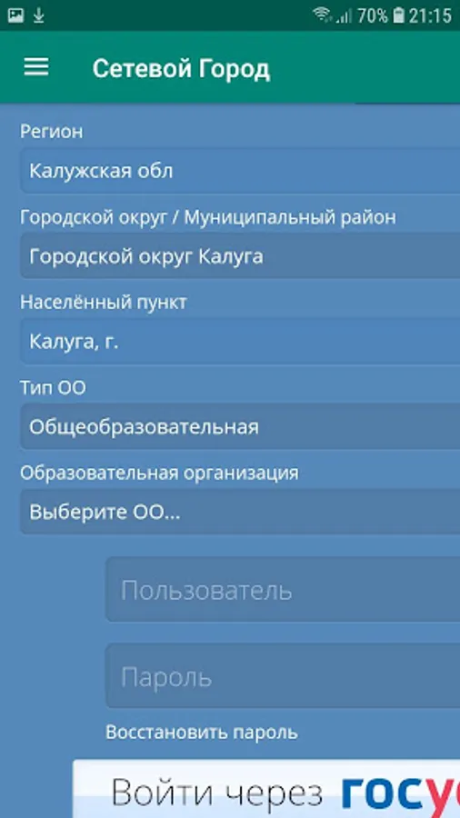 Entrance to the Network City Education of Kaluga and the region with a password and through State services for students and their parents.