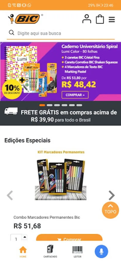 The Mundo BIC Store is the Official Store of BIC® Brazil, in partnership with Kalunga. It is BIC's e-commerce aimed at the end consumer with the complete portfolio! Place your order online, search for products, discover the BIC product catalog, see the status of your orders and receive wherever you are in Brazil!