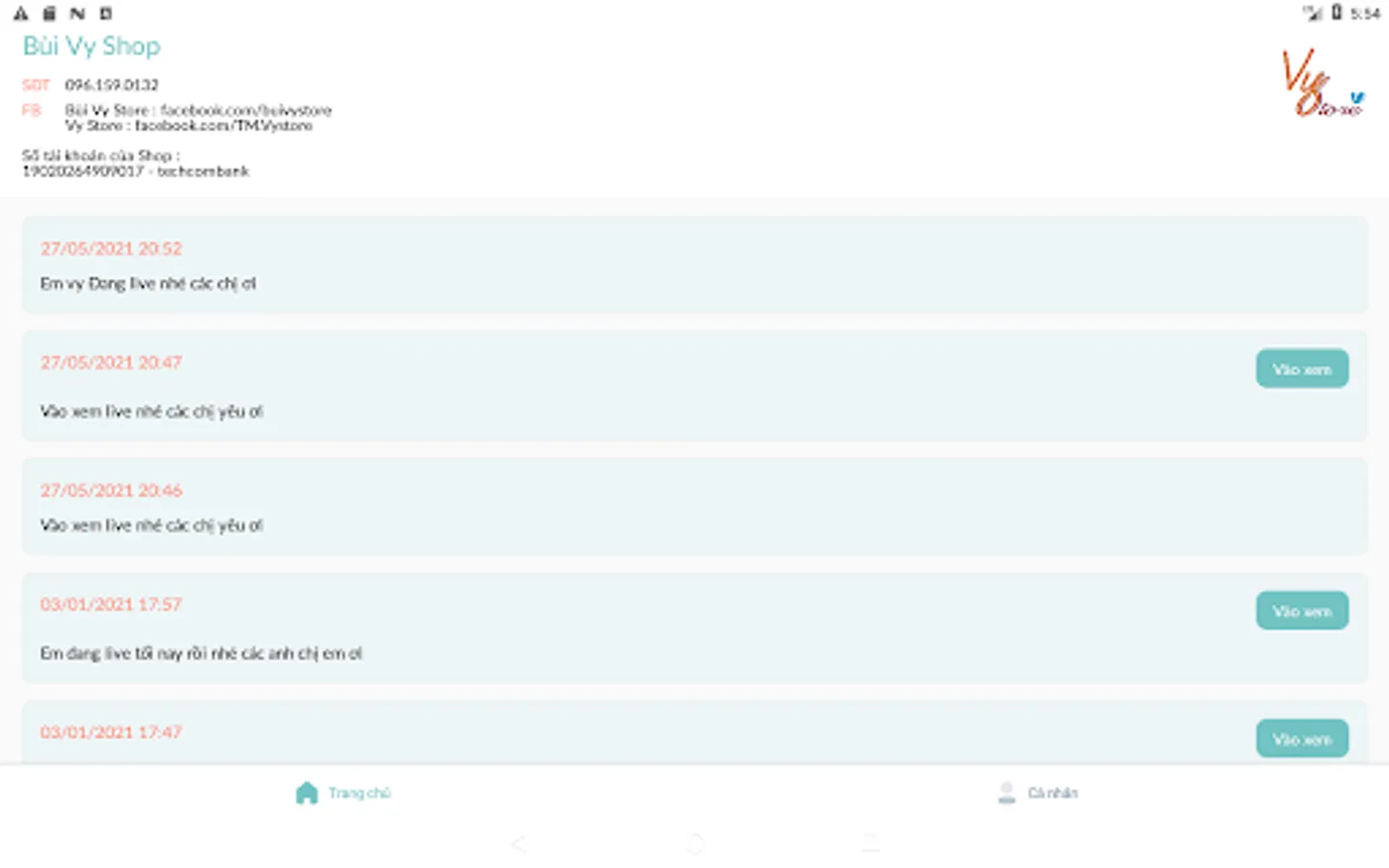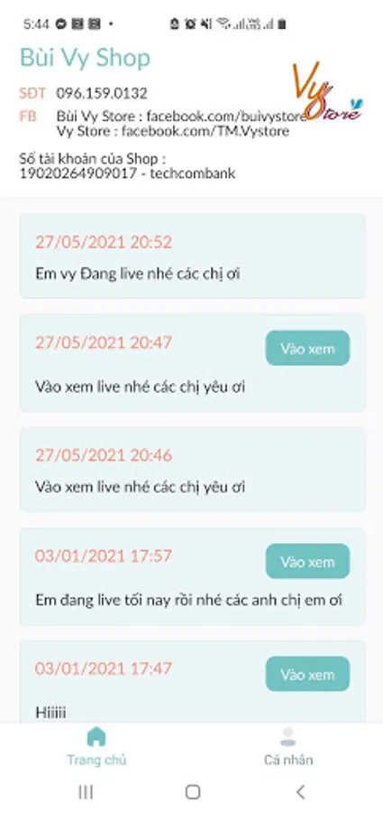 Follow Vy Store's livestream schedule.