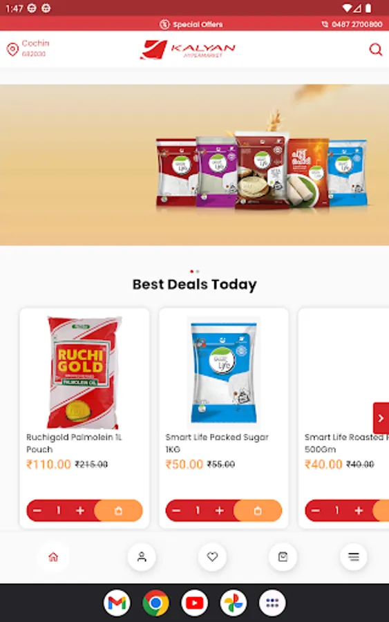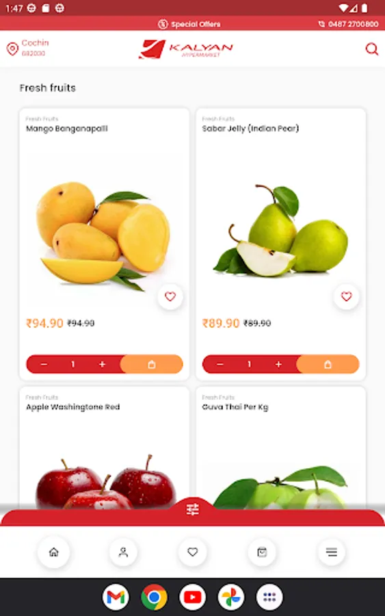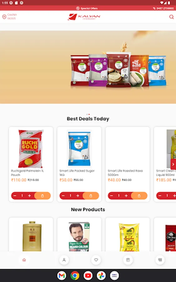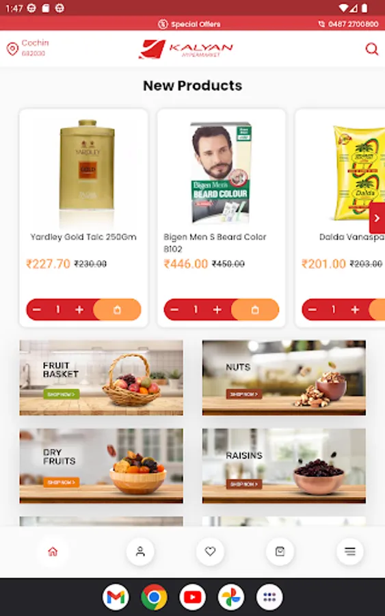 Introducing the all-new Kalyan Hyper Market Shopping App! This app makes it easier and more convenient than ever for shopping. With the app, you can quickly browse through a variety of products, check out the store's latest sales and promotions, and add items to your cart with just a few taps. You can also save time and money by creating a shopping list, which is easily accessed at any time. Try out the all-new Kalyan Hyper Market App and experience the ease and convenience of shopping on the go!