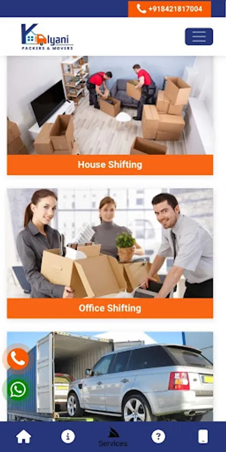 Kalyani packers and movers is known for quality of services that we provide to our clients. We offer our client variety of service which includes from Custom Clearance, Insurance services, Warehousing facilities, moving and packing Services, Car Transportation services & much more...