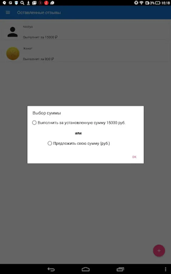 - It is possible to view those who have already responded to the task, to set their own amount for which they are ready to perform the work (yes, it is possible to compete with other performers by reducing the rate).