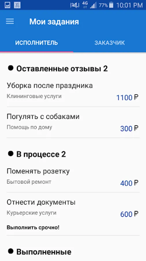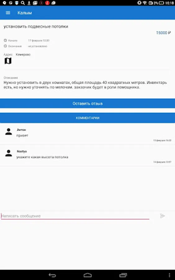 - If you have been chosen as the executor of the task, then you will have the opportunity to contact the customer using the contact information that will become available (phone number, email), or through the internal chat of the application.