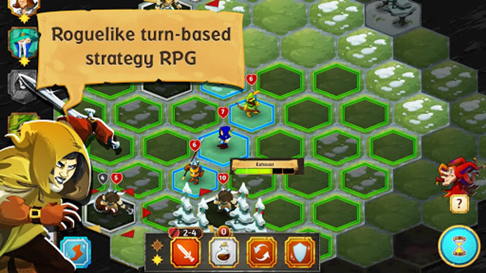 - Roguelike turn-based strategy meets RPG on a hexagonal battlefield.