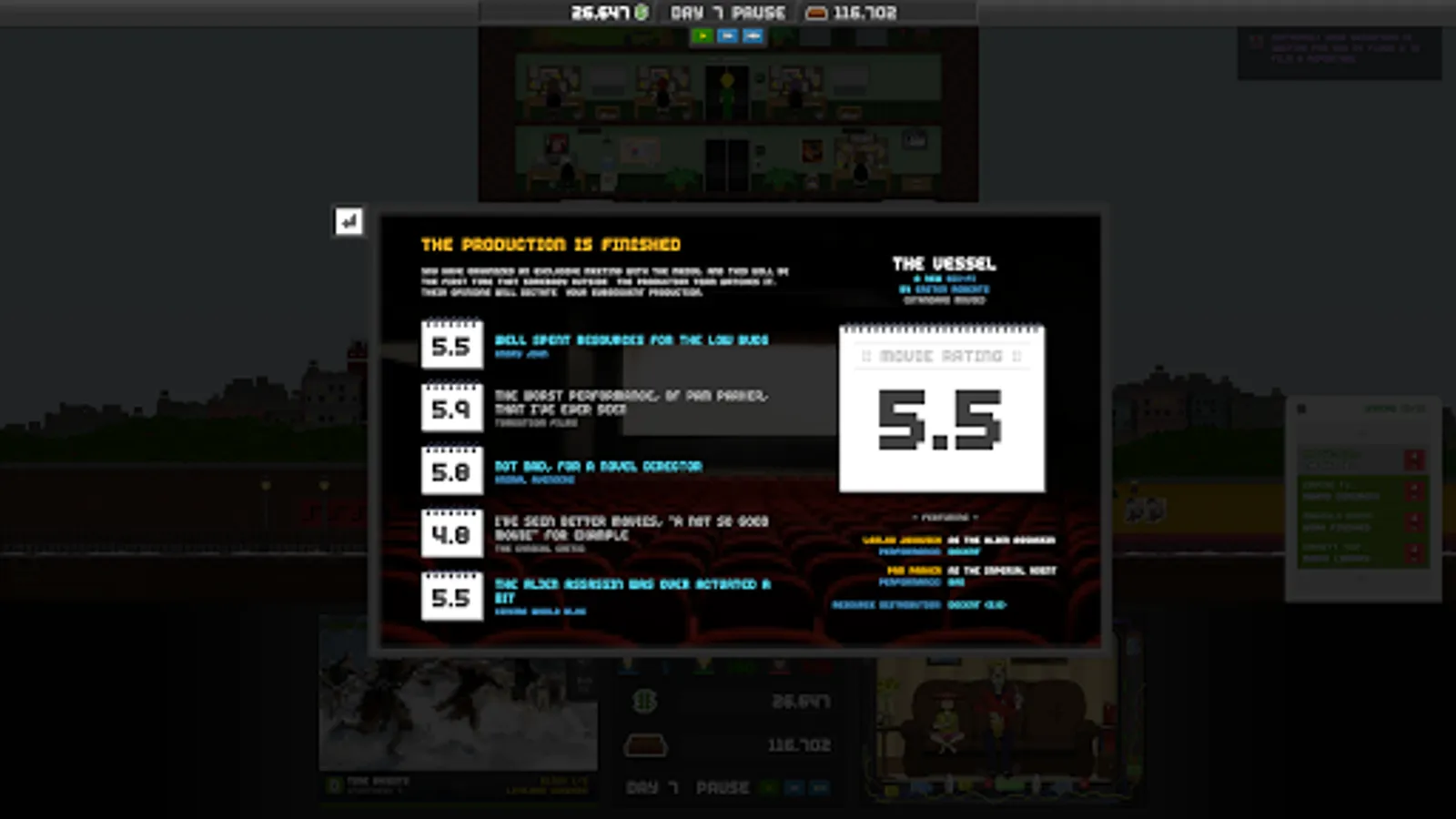 Not only will you produce TV shows, you will also produce and direct movies that are based on personalized and randomized movie scripts with lots of combinations fitting every genre. Your work as a director will influence the quality of the productions’ outcome , last but not least because you know how to handle the strengths and weaknesses of conceited or frustrated actors as well.