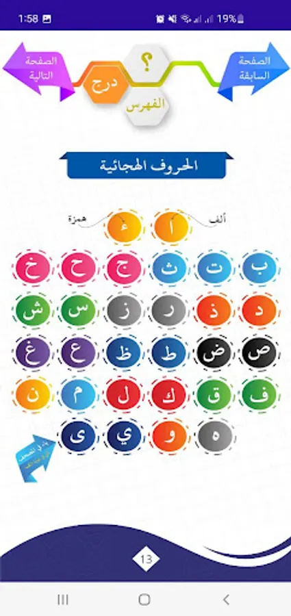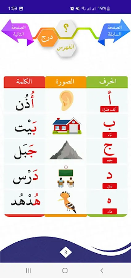 In it, the student learns the principles of the Arabic language, step by step, starting with the letters and ending with the words and verses that turn into phrases.