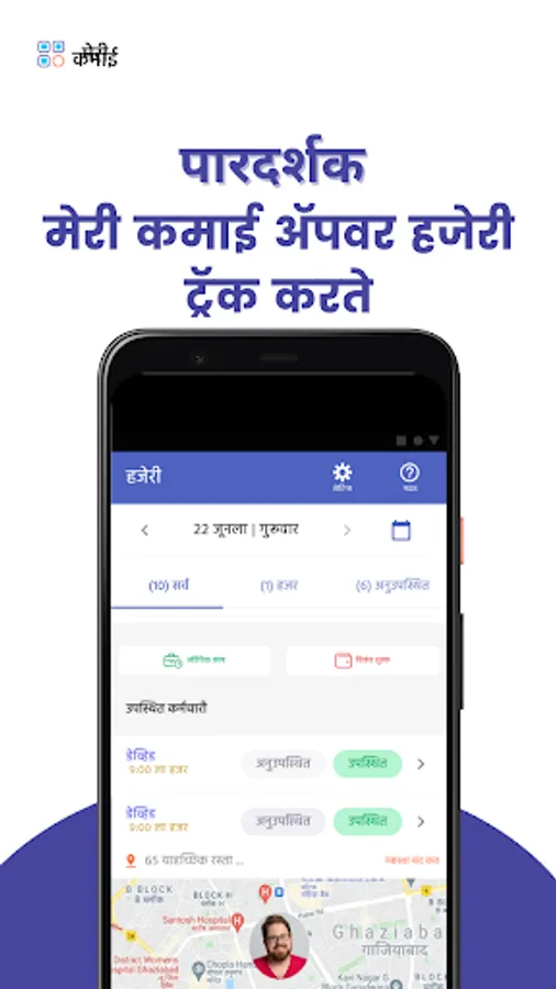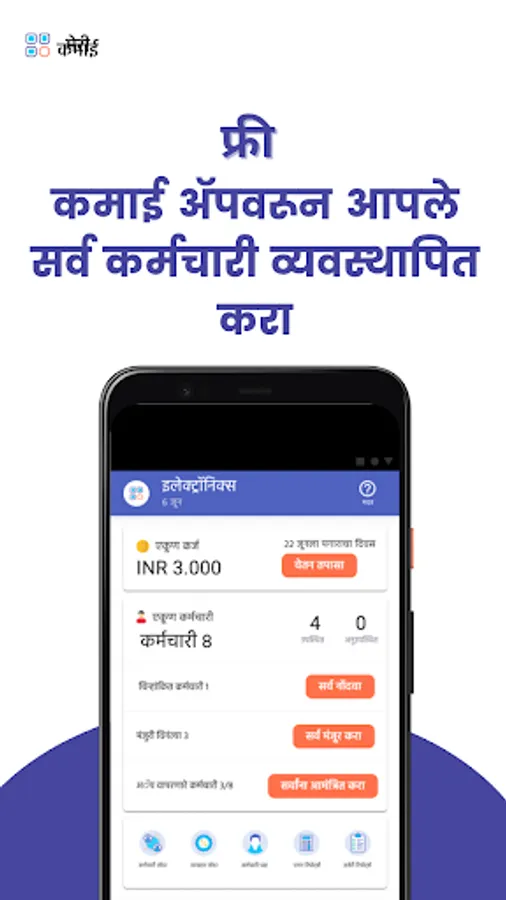 कर्मचाऱ्यांची हजेरी व्यवस्थापित करणे आणि पगाराच्या मोजणीसाठी 50,000 हून अधिक लघु कंपन्या कमाई ॲपचा वापर करतात आणि त्यावर विश्वास ठेवतात.