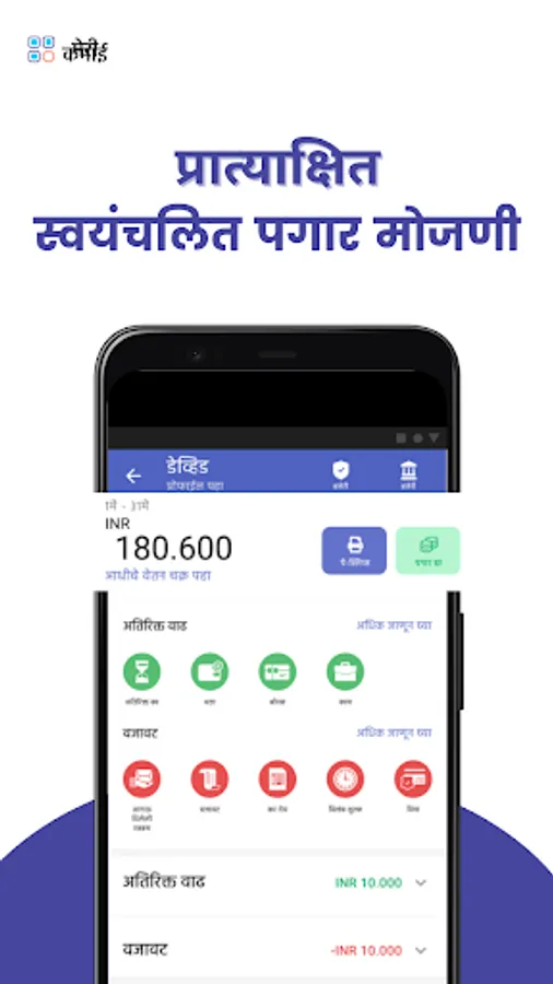 महिन्याच्या अखेरीस, प्रोफेशनल पे-स्लिप्स प्रिंट करा आणि आपल्याला हव्या त्या कर्मचाऱ्यासह त्या सामायिक करा. आपल्या व्यवसायाला प्रोफेशनल बनवा.