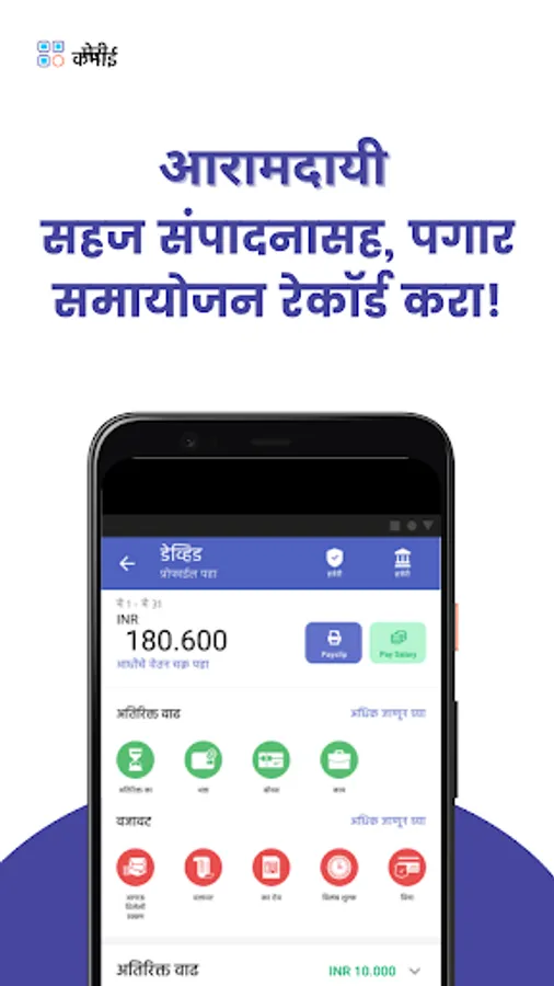 कर्जे, आगाऊ दिलेले पैसे आणि अतिरिक्त केलेले काम यासारख्या पगाराच्या इतर गोष्टी या ॲपमध्ये व्यवस्थापित करा, आणि चुकून कर्मचाऱ्यांना अतिरिक्त पैसे देऊ नका. आपल्या फोनवर त्यांच्या पगारांचा डिजिटल रेकॉर्ड ठेवा!