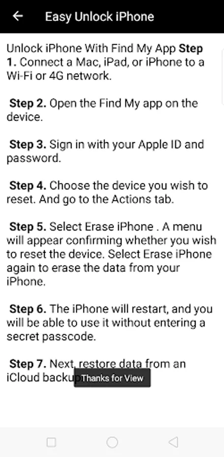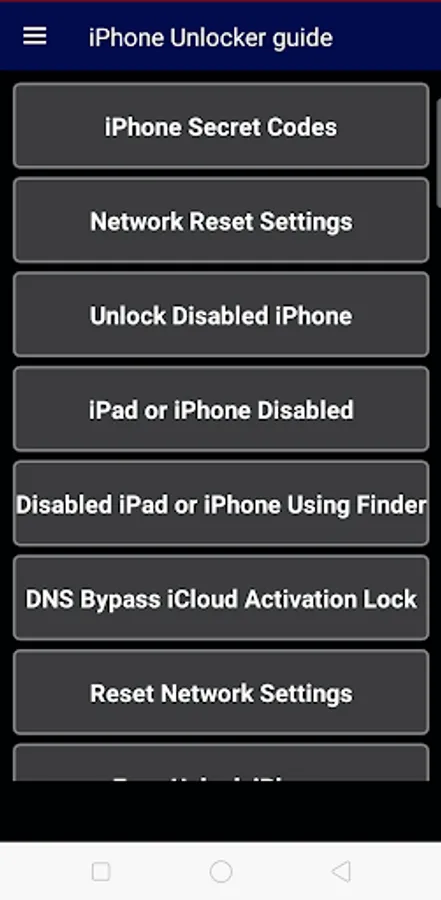 This app has to iPhone Secret Codes, Network Reset Settings, Unlock Disabled iPhone, iPad or iPhone Disabled, Disabled iPad or iPhone Using Finder, DNS Bypass iCloud Activation Lock, Reset Network Settings, Easy Unlock iPhone, Reset your Apple ID password, Use Recovery Mode, and much more. I think this app you need. We hope you find the app Useful. If You Like this App, Give it Five Stars.
