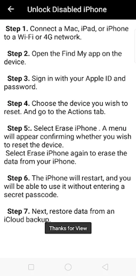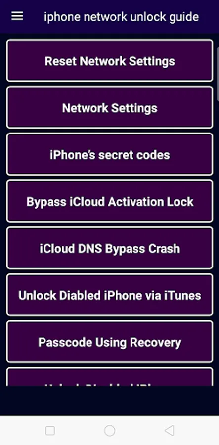 This app has to Reset Network Settings, iPhone’s secret codes, Bypass iCloud Activation Lock, iCloud DNS Bypass Crash, Unlock Diabled iPhone via iTunes, Passcode Using Recovery, Unlock Disabled iPhone, Unlock Disabled iPhone, Enter DFU Mode on iPhone, and much more. I think this app you need. We hope you find the app Useful. If You Like this App, Give it Five Stars.