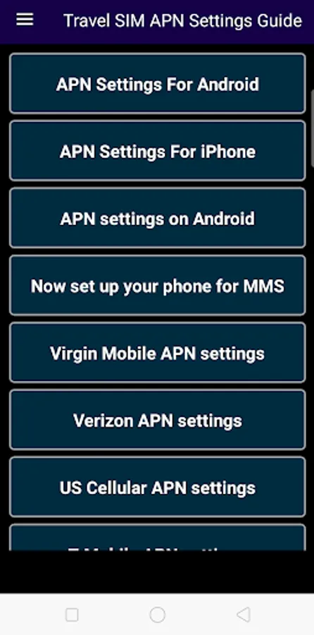 Travel SIM APN Settings Guide. This app has APN Settings For Android, APN Settings For iPhone Now set up your phone for MMS, Virgin Mobile APN settings, Verizon APN settings, US Cellular APN settings, T-Mobile APN settings, Boost Mobile APN settings, AT&T APN settings, and much more. I think this app you need. We hope you find the app Useful. If You Like this App, Give it Five Stars.