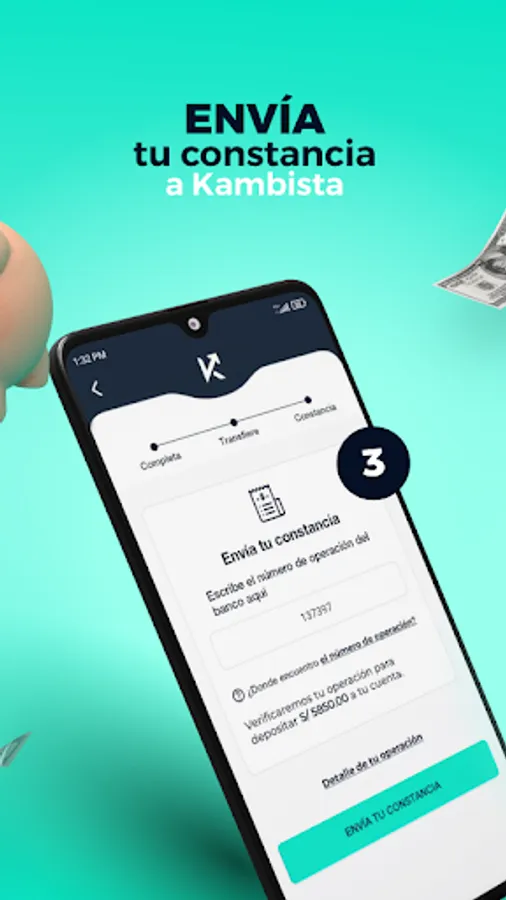 🔁 Transfer: Transfer the amount from your online banking to the Kambista account indicates and keep the receipt.
