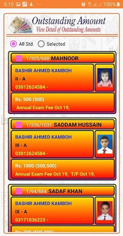 Using this app, you can get kids information, outstanding amount details, payment history, attendance reports, each exam's result details, daily SMS, daily notifications and much more on just one two touches