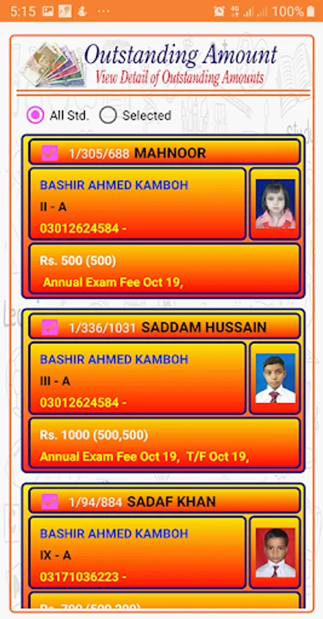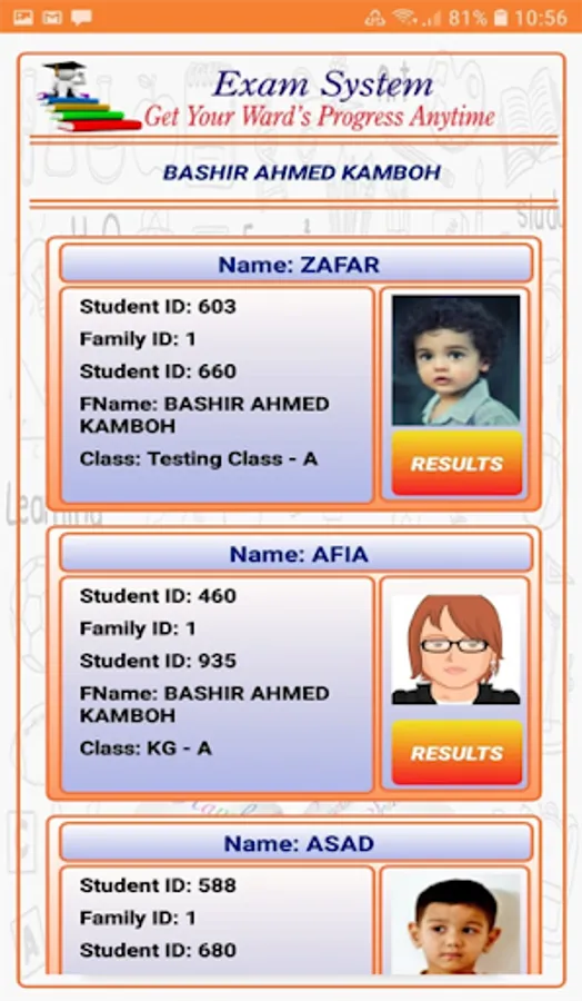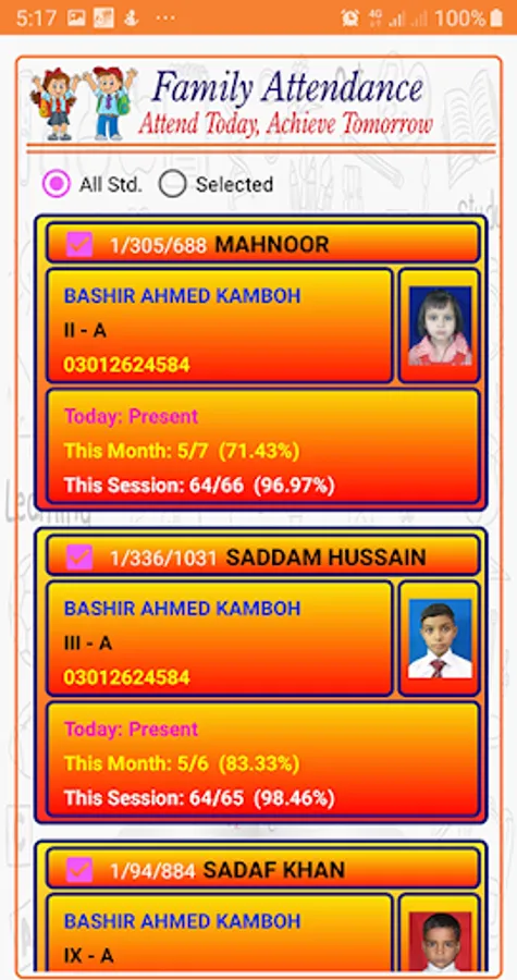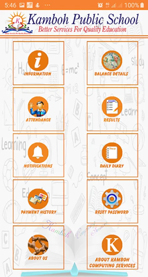 Using this app, you can get kids information, outstanding amount details, payment history, attendance reports, each exam's result details, daily SMS, daily notifications and much more on just one two touches