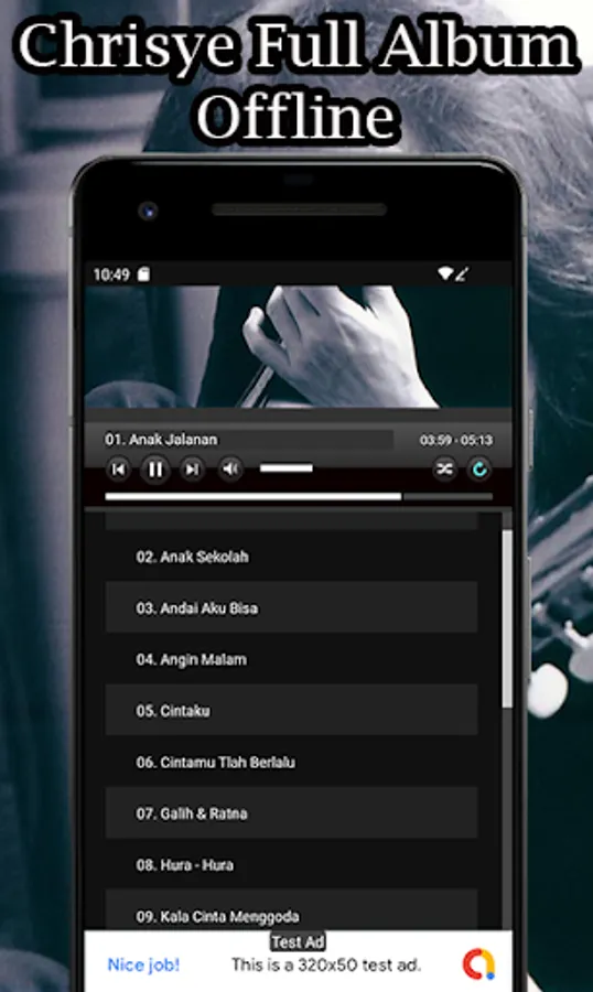 This application is a music player application that contains a collection of songs by the legendary Indonesian singer Chrisye. This Chrisye Full Album Offline song application contains a collection of the best and most complete collection of Chrisye albums, the best hits, served offline and you can install them for free. So you can listen to this Chrisye song anytime and anywhere.