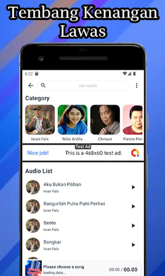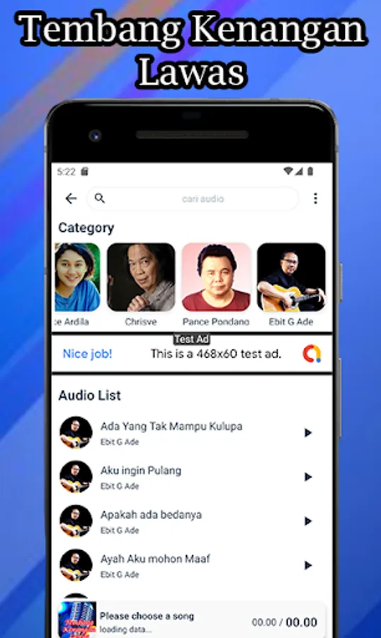 This application is a music player application for fans of old music. This application contains old nostalgic songs from the 70s 80s 90s. This song of Memories is very suitable and very appropriate for you, because in this application there are many songs of Memories of Nostalgia which are very popular and in demand, including songs like Iwan Fals, Chrisye, Nike Ardila, Pance Pondang, and Ebit G Ade. What's interesting about this application is that you don't need to be connected to an internet connection when playing songs on this application, so it doesn't drain your money, you can enjoy this song non-stop anywhere and anytime.