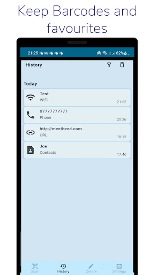 QR Barcode Scanner and generator can scan and read automatically all QR codes / barcode types including text, URL, ISBN, product, contact, calendar, email, location, Wi-Fi and many more formats.