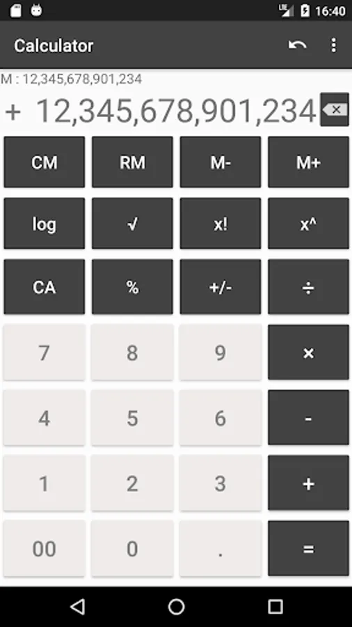 It is a calculator that can calculate many digits, both large numbers and small numbers.