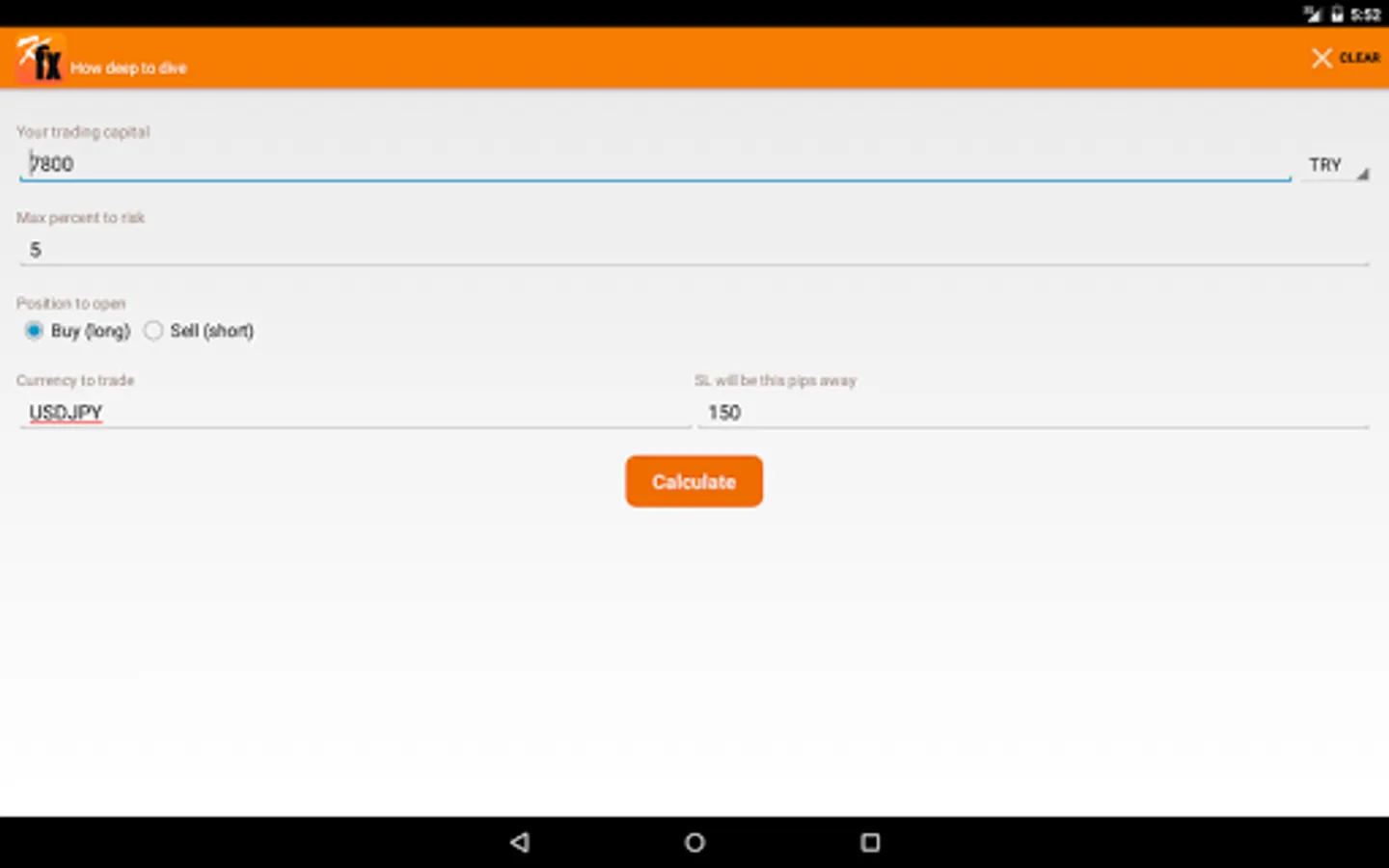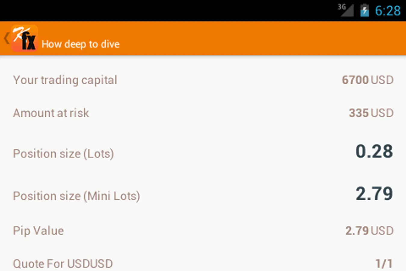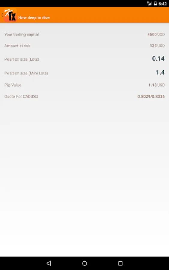 * Pip value for calculated size is displayed along with quote used to calculate position size.