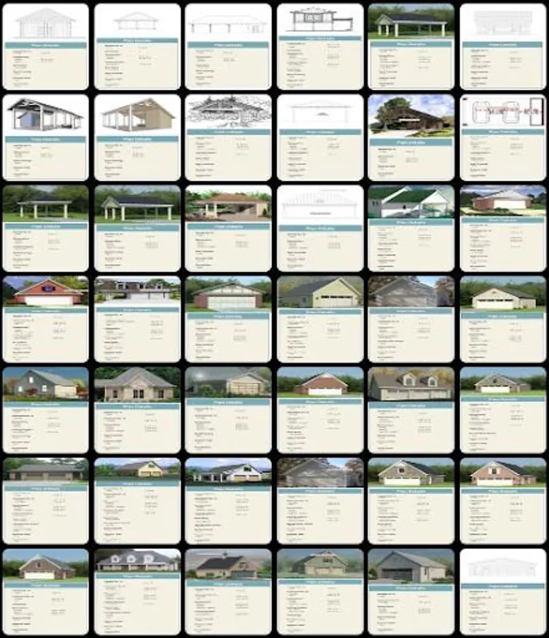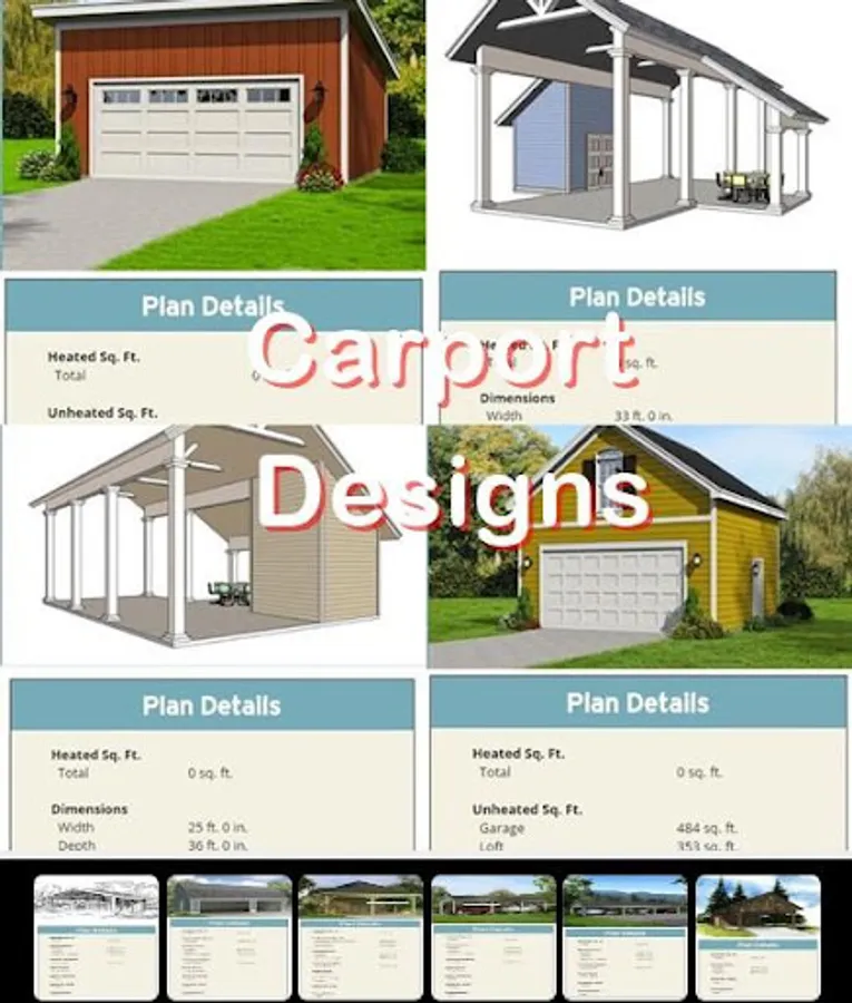 This application displays the carport designs that feature as well as a detailed plan carport size plan, elevation plan, foundation plan, roof plan, a plan of the exterior.