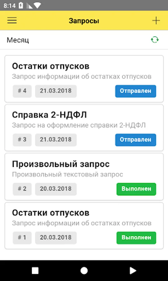 An employee's personal account is a mobile application that provides an opportunity for employees of an organization to send requests to the accounting department to generate a 2-NDFL certificate, obtain information on leave balances, send an arbitrary text request.