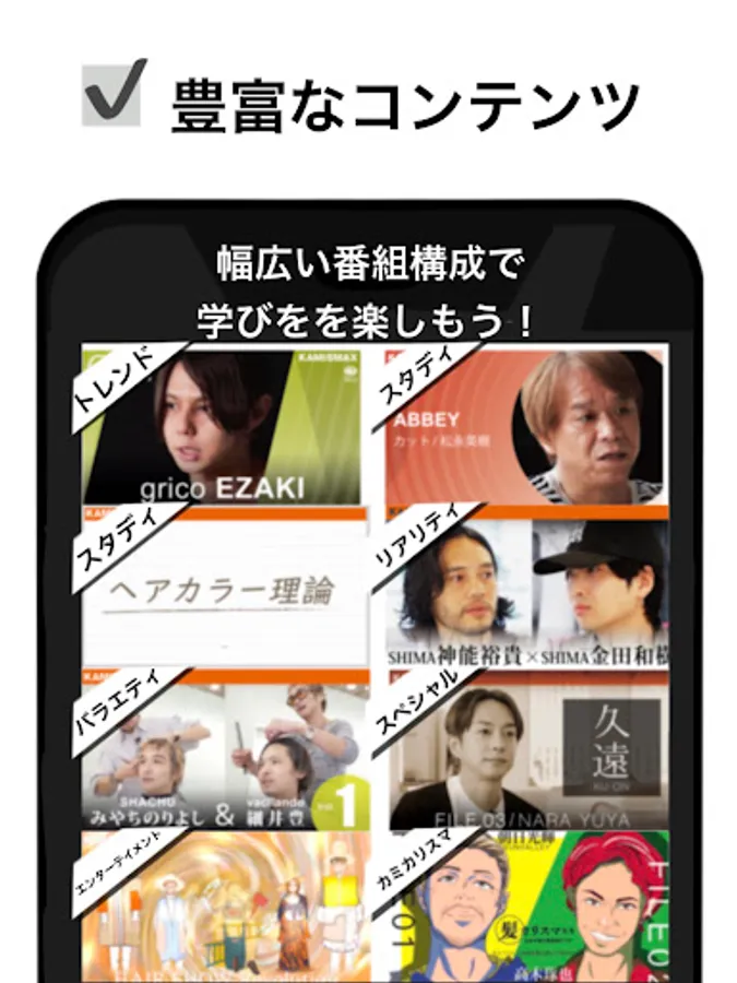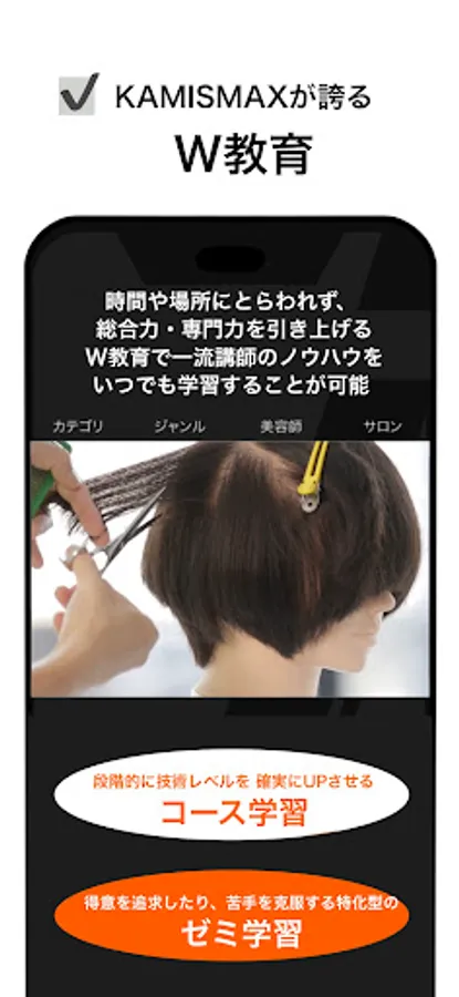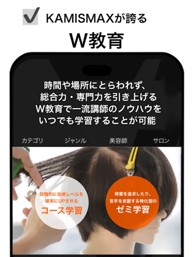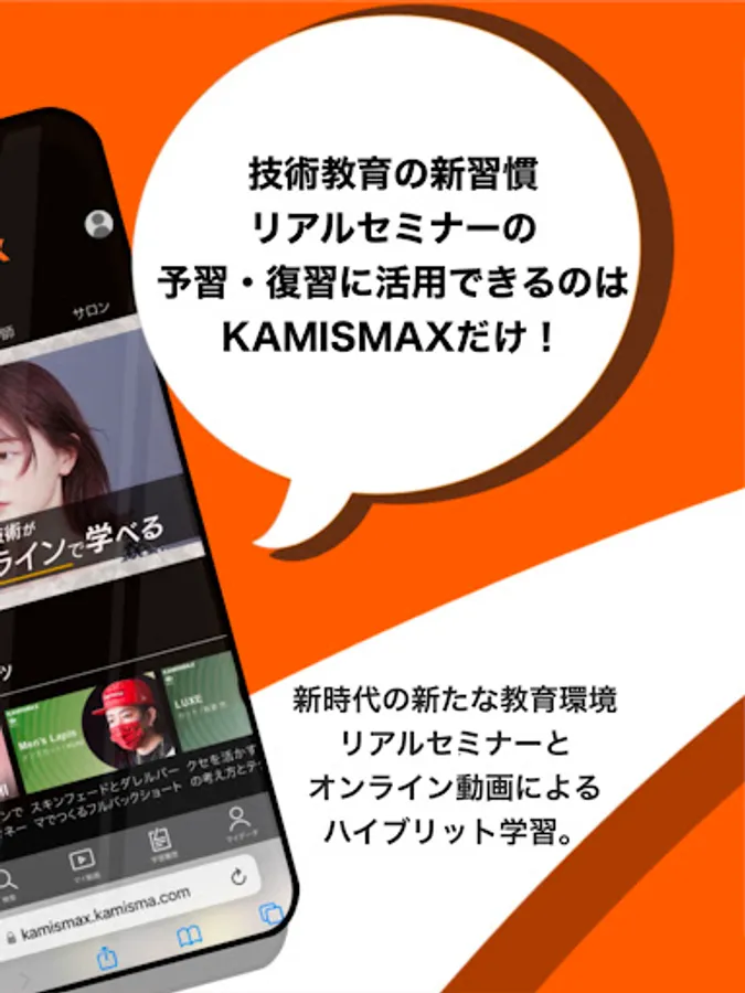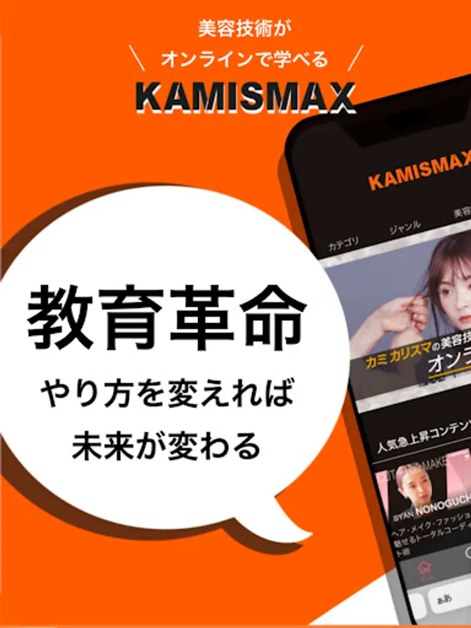 This application KAMISMAX is an educational video distribution service for hairdressers. It will be an online platform that provides a new educational environment. You can learn first-class techniques and ways of thinking from the world-renowned charismatic beautician "KAMI CHARISMA" from Japan. In addition to just learning, please use it as a service that allows you to learn while having fun, such as entertainment videos. In addition, there are 5 unique features of KAMISMAX.