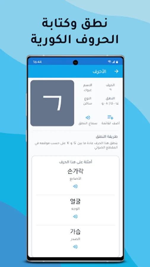 The application contains many common vocabulary and words that are used a lot in Korean and these vocabulary are divided into groups and each group contains its own vocabulary and all the vocabulary is provided with its own pronunciation voice in a clear way.