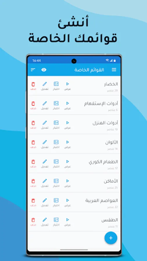 The application also has the feature of creating special lists to add favorite vocabulary, learn from it and even test from it, and this method is very effective in memorizing vocabulary.