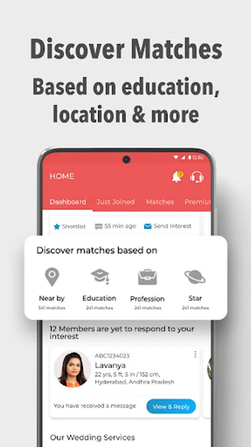 • Access complete profile information like Educational institute, Company and Horoscope / Kundli.