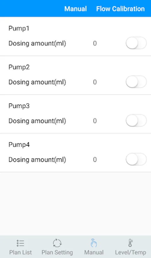 3.Manual control modules, you can manually adjust the dosing quantitative in this module, this module also contains calibration;