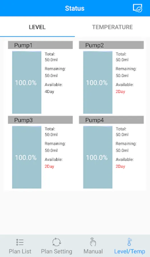 This application is used to control Kamoer dosing pump, dedicated to Aquarium breeding, application contains four modules, 1.Temperature display modules,you can set the temperature alarm threshold in this module,when the dosing pump temperature exceeds the alert thresholds,dosing pump will make warning sounds, this module can display real-time temperature and time the temperature of the last 24 hours;