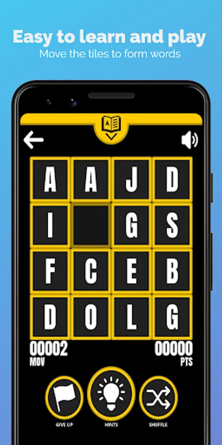 Move the tiles by sliding your finger on them and try to form 3 or 4 letter words, but remember, you can only move to an empty tile. Form words and learn.