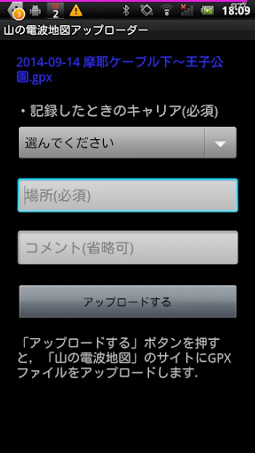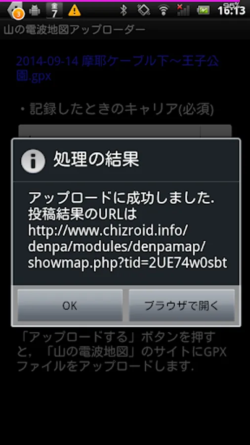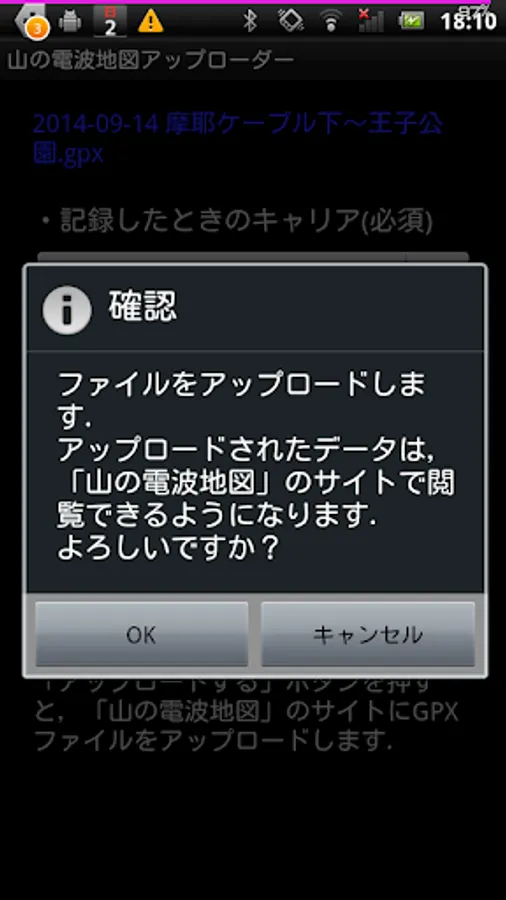 In Sessaku of GPS logger app "Yamatabi logger", the data recorded in the setting of "= on the radio wave information to record", you can upload.