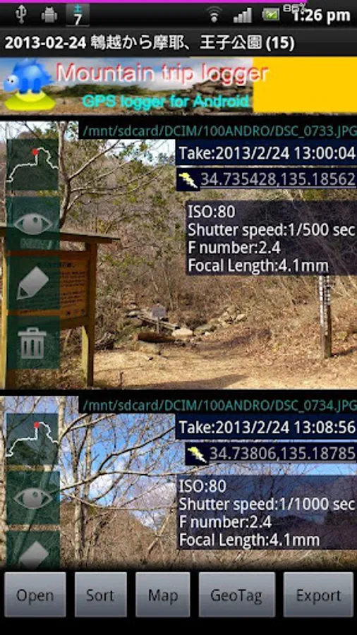 However, it is all right if and when the track log data was taken, and GPX photo search.