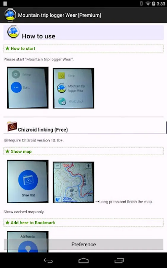 Mountain trip logger Wear is an application for use from Android Wear the "Mountain trip logger GOLD" and "Chizroid".