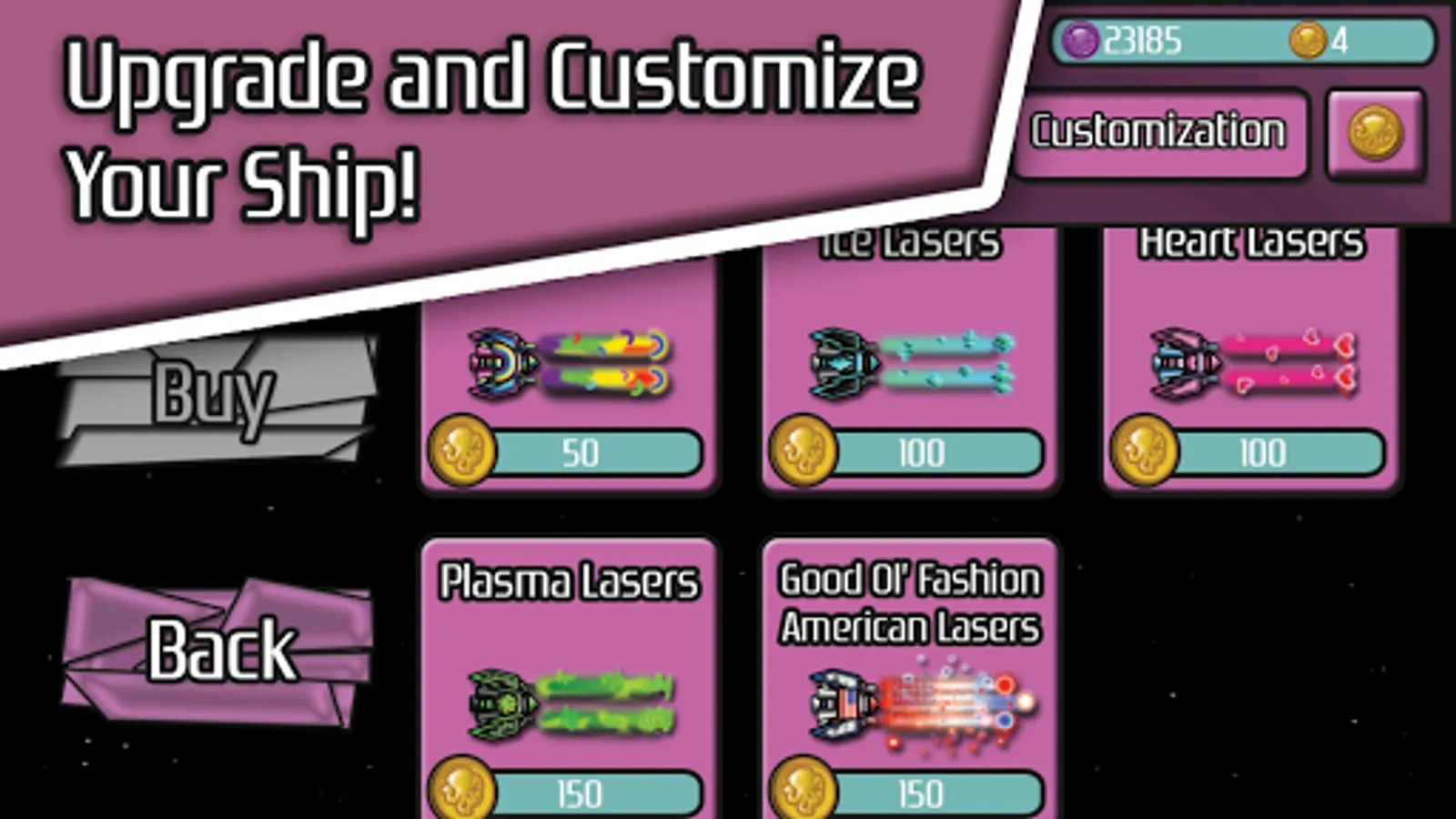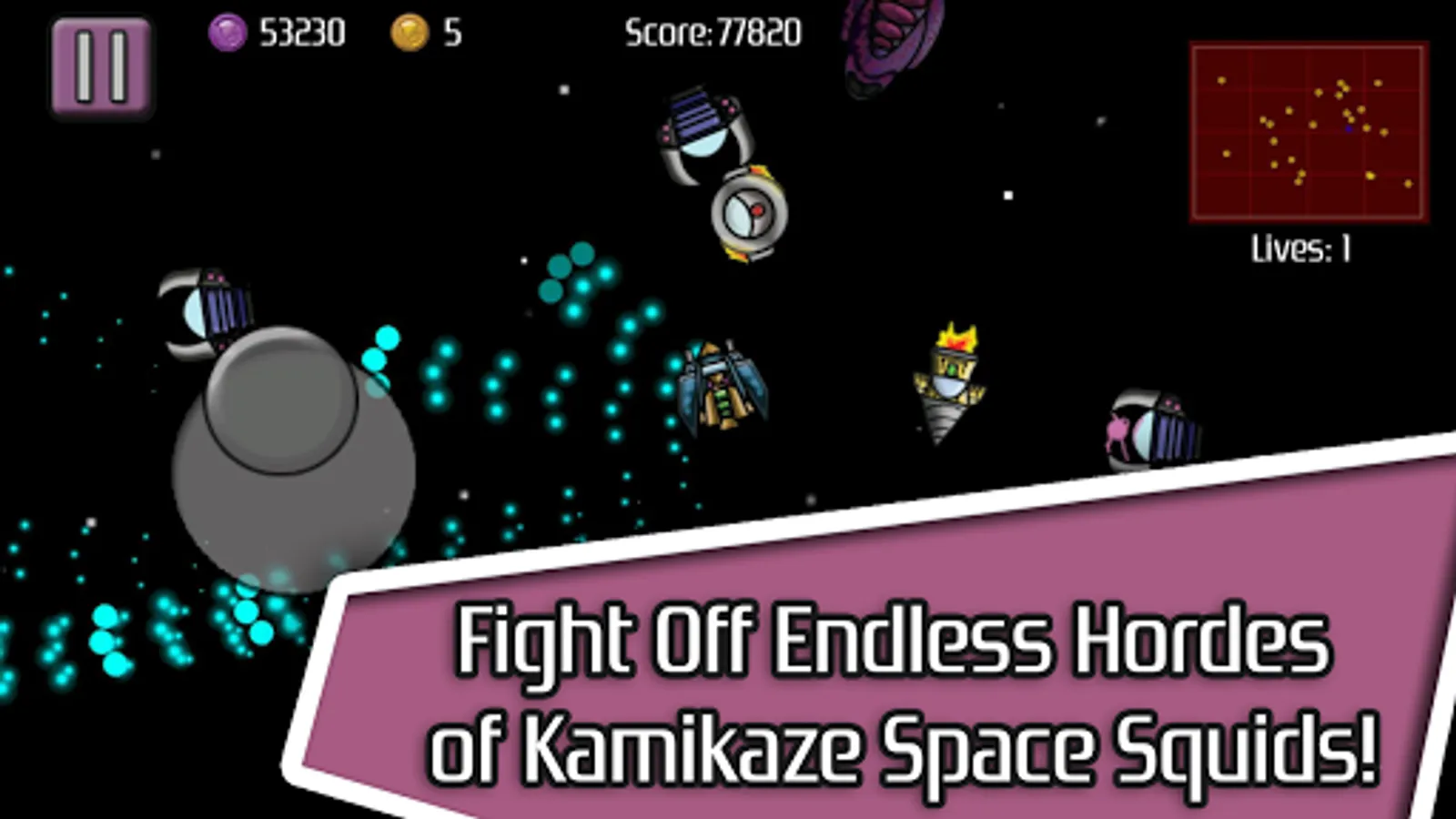 Play as "Ping," a penguin spaceship pilot, and save the galaxy from the endless horde of kamikaze space squids. Pilot to different planets to figure out where the horde is coming from, and end up fighting in another dimension, "Squid Space." Play through the story mode to unlock other game modes and upgrades. Play infinity mode and destroy as many kamikaze space squids as you can. Upgrade and customize your ship in the hangar, and collect golden squid coins to unlock premium content.