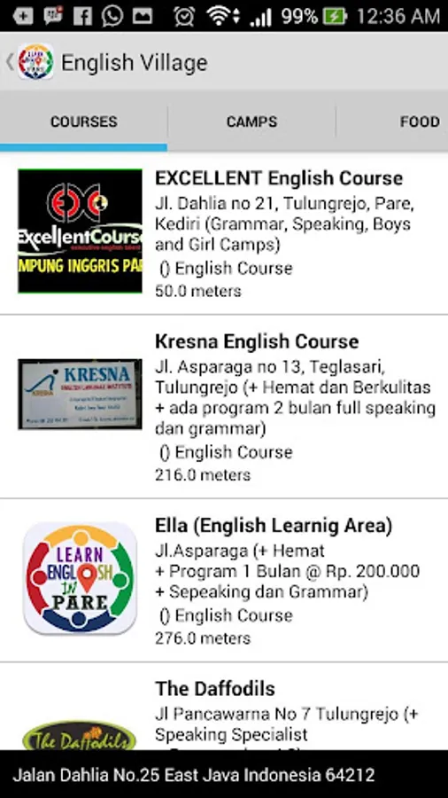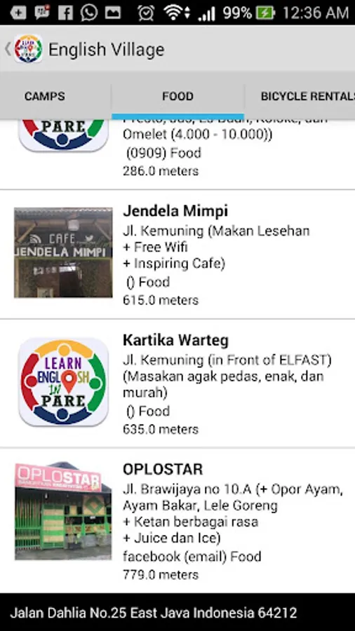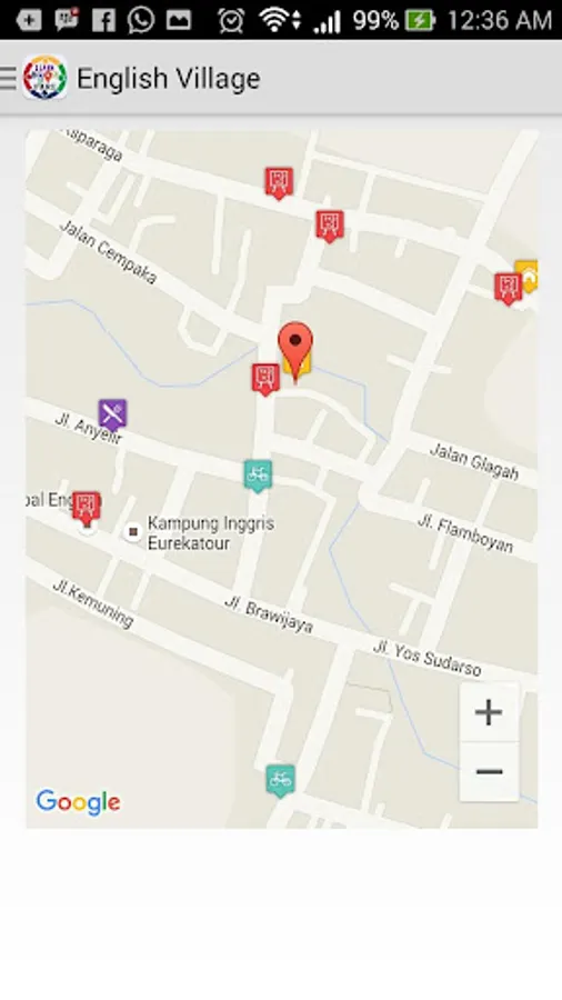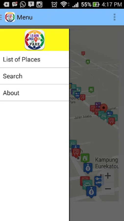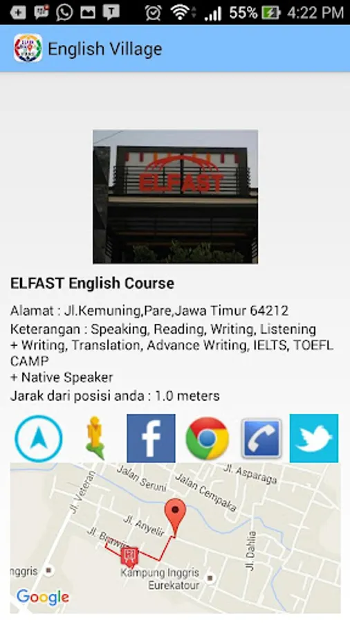 Map Kampung English is android-based application that maps the location of some kinds of locations such as the course, boarding house or a camp, a restaurant or food stall, bicycle rental, ATM centers, etc.