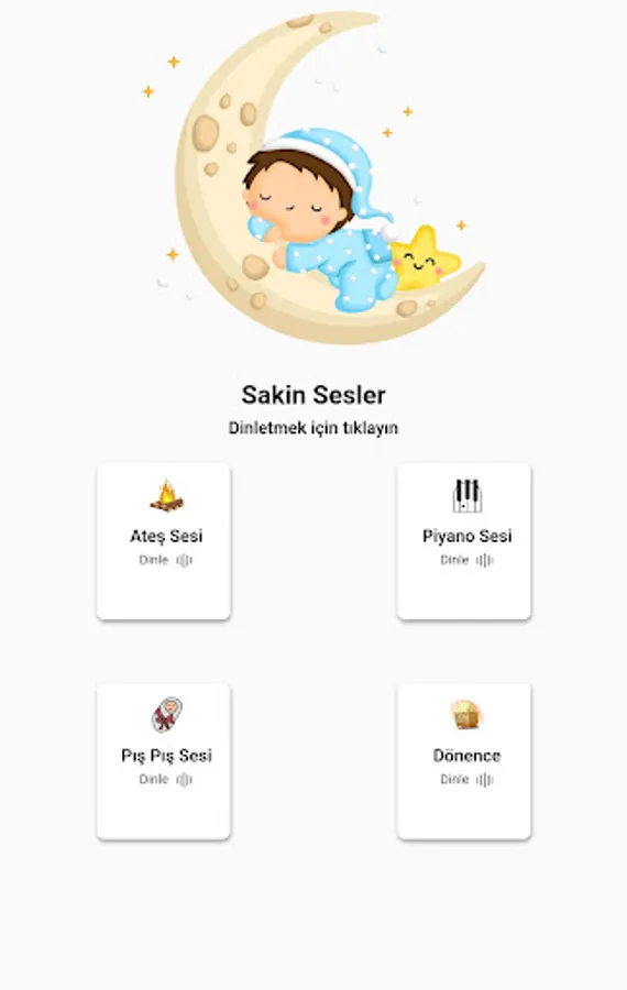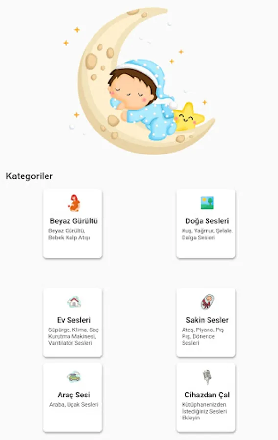 Baby Sleeper application, which has Turkish and English language support, has the following sounds in addition to being able to open your own sound files: