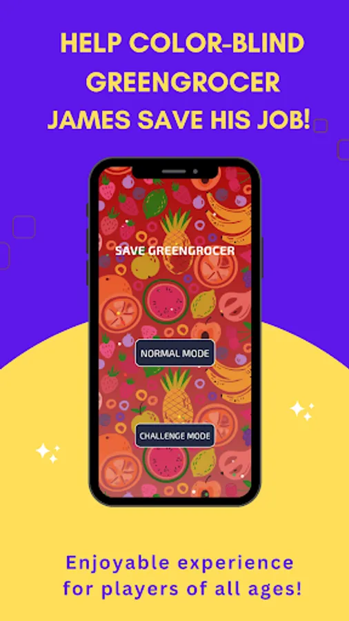 In the fun game "Save Greengrocer", you help James, a color-blind grocer, to save his business. As James tries to sell healthy fruits and vegetables to satisfy his customers, he cannot distinguish between rotten produce due to his color blindness. In the game, you assist James in saving his business by matching the rotating fruits in the correct order. With each level, the speed of the rotating fruits increases and the difficulty level rises. While the misleading colors of the fruits capture the players' attention, the simple controls and fun fruit-themed graphics provide an enjoyable experience for players of all ages. Are you ready? Start playing today to help James!