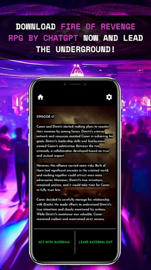 Fire of Revenge RPG, a collaboration between ChatGPT and Dall-E, offers an exhilarating gameplay experience that combines gripping storytelling, intense combat, and strategic decision-making. In this action-packed adventure, you step into the shoes of Caner, a skilled vigilante, and team up with Katerina, a former gang member with a thirst for justice. Together, you must navigate treacherous paths, infiltrate criminal organizations, and unravel a web of corruption.