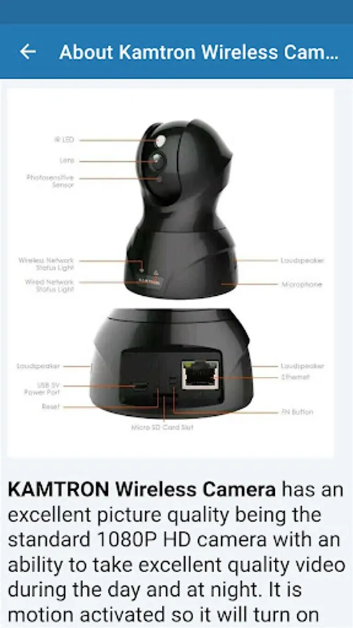 In the content of the mobile app, you can find explanations containing the above titles. This app, in which the features Kamtron Wireless Camera are explained, is a guide.
